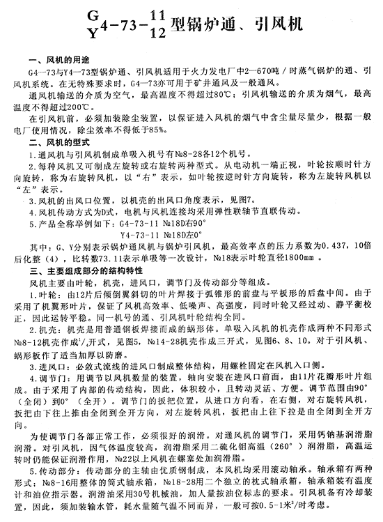 >G4-73、Y4-73锅炉通、引风机概况